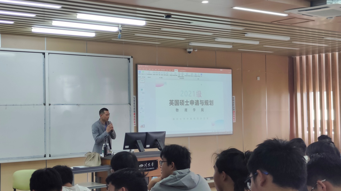 2023年3月10日下午,学院邀请四川大学出国留学培训部王彬睿老师在江安校区综合楼C座406与408教室分两场进行学风建设之留学出国宣讲。学院2021级全体本科生参加了此次宣讲,活动由2021级辅导员唐禹老师主持。