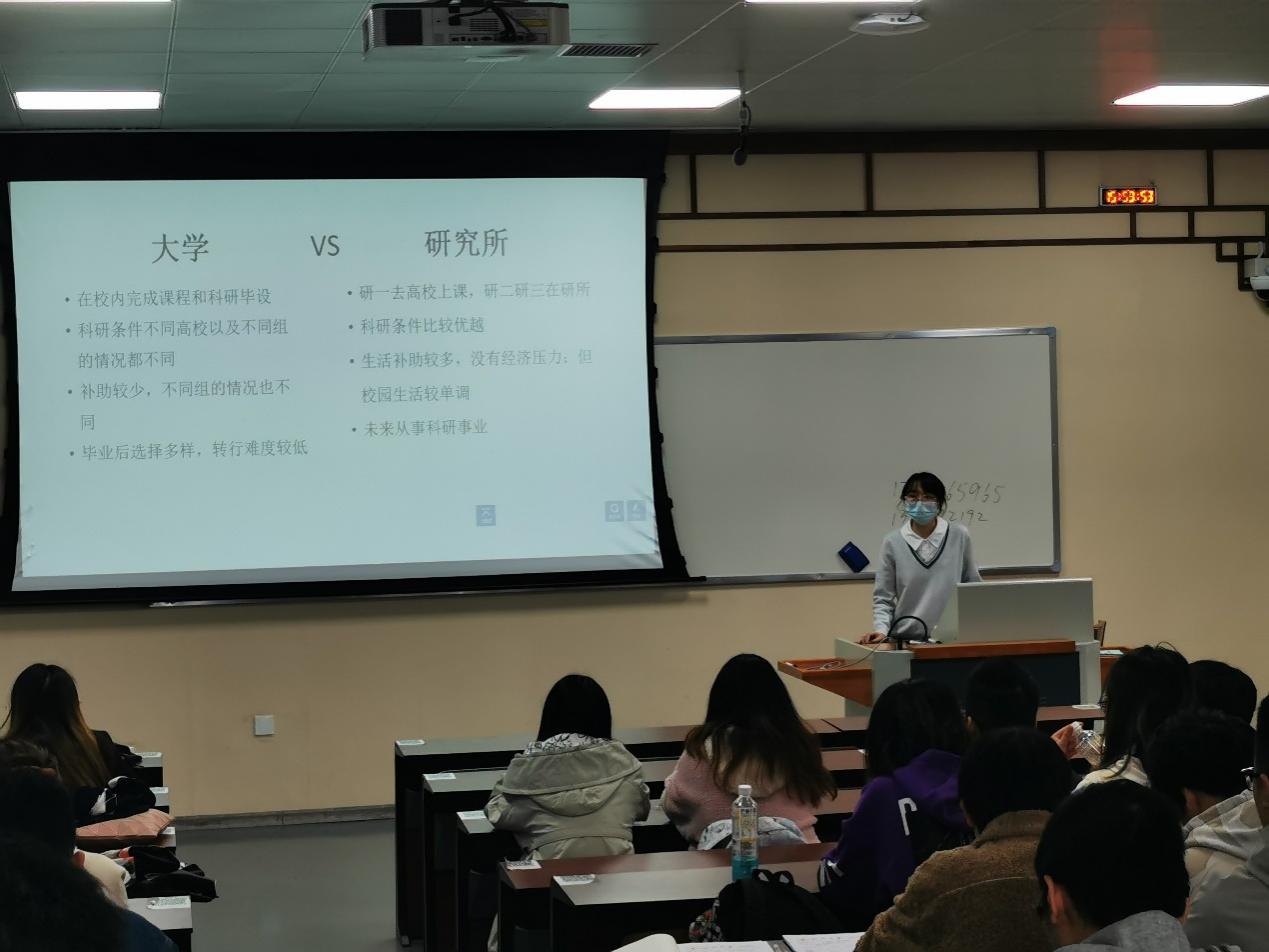为精细化、个性化服务学生的成长成才,关心和解决学生学习中的实际困难,学期伊始,学院对2019级全体同学进行了问卷调研,以了解每个学生的未来学业发展规划以及当前学习中遇到的困难,并针对同学们遇到的问题,特别邀请了学院部分大四年级的学长学姐为同学们做了保研、考研分享。