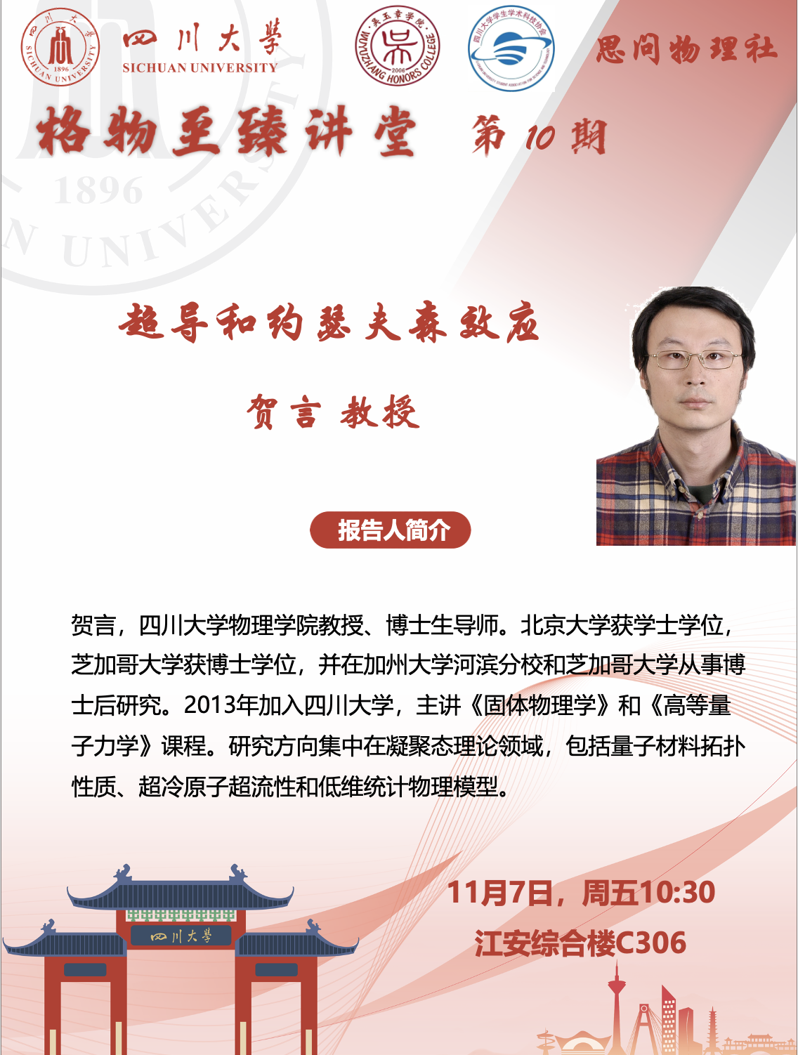 【学业指导站】格物至臻讲堂第10期(预告):超导和约瑟夫效应