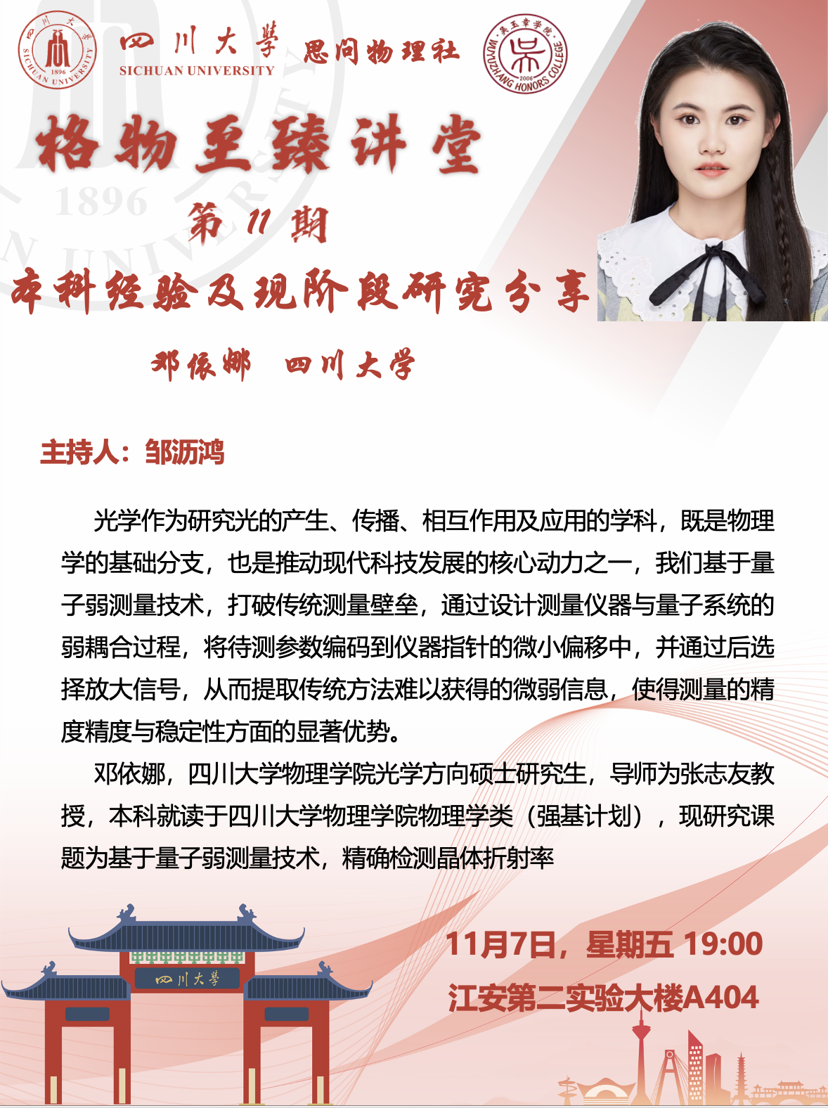【学业指导站】格物至臻讲堂第11期(预告):本科经验及现阶段研究分享