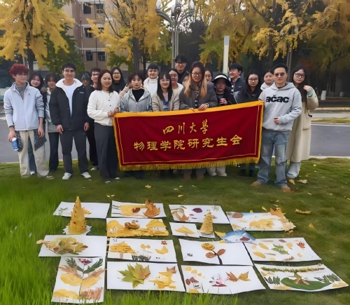 活动正式开始后,同学们纷纷步入铺满金色银杏叶的校园,俯身采集银杏叶、枫叶、松果等自然素材。大家或以小组为单位,或独自沉浸其中,用巧思将落叶转化为艺术作品。现场彩叶铺地、笑声盈耳,共同构筑起"自然与艺术"交融的创作空间。