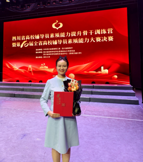 11月15日至16日,由四川省委教育工委、四川省教育厅主办的四川省高校辅导员素质能力提升骨干训练营暨第10届全省高校辅导员素质能力大赛决赛在西华大学举行。我院辅导员唐禹凭借扎实的理论功底、过硬的业务能力和出色的现场表现,从来自全省125所高校的166名参赛选手中脱颖而出,荣获大赛特等奖(全省仅4名)。