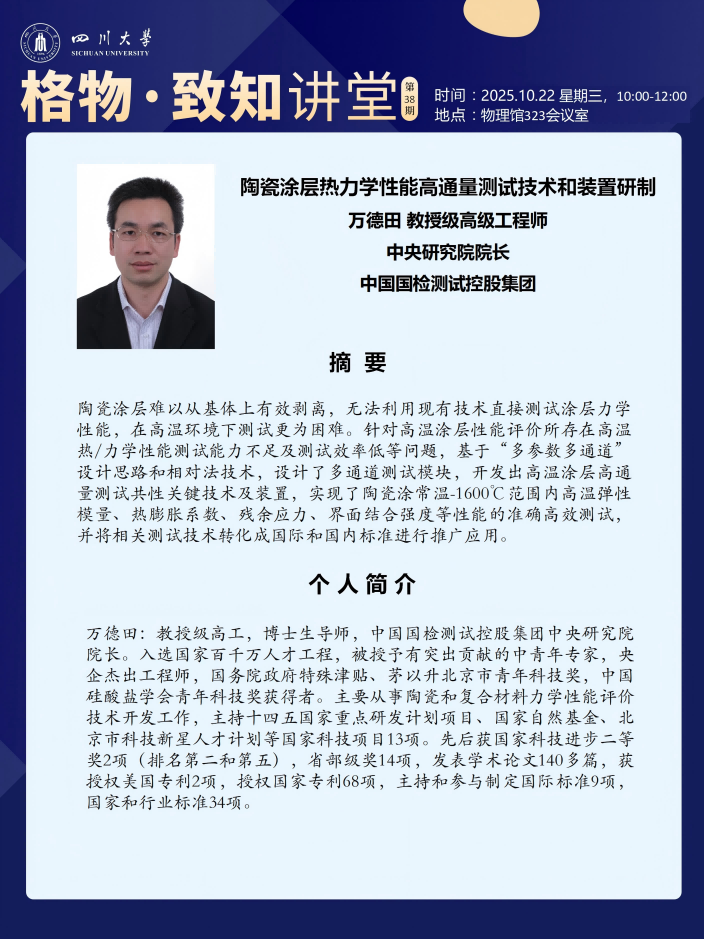 【学术报告】格物·致知讲堂第三十八期(2025年10月22日)