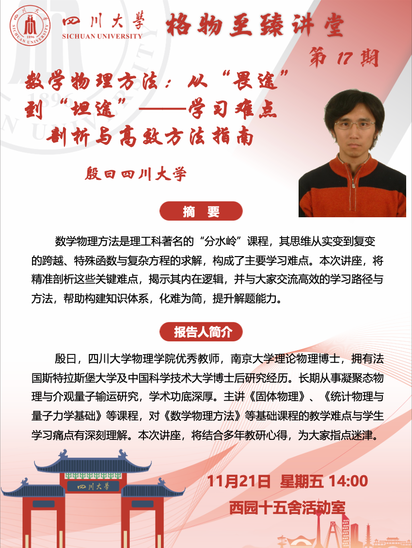 【学业指导】格物·至臻讲堂第17期:数学物理方法:从“畏途”到“坦途”