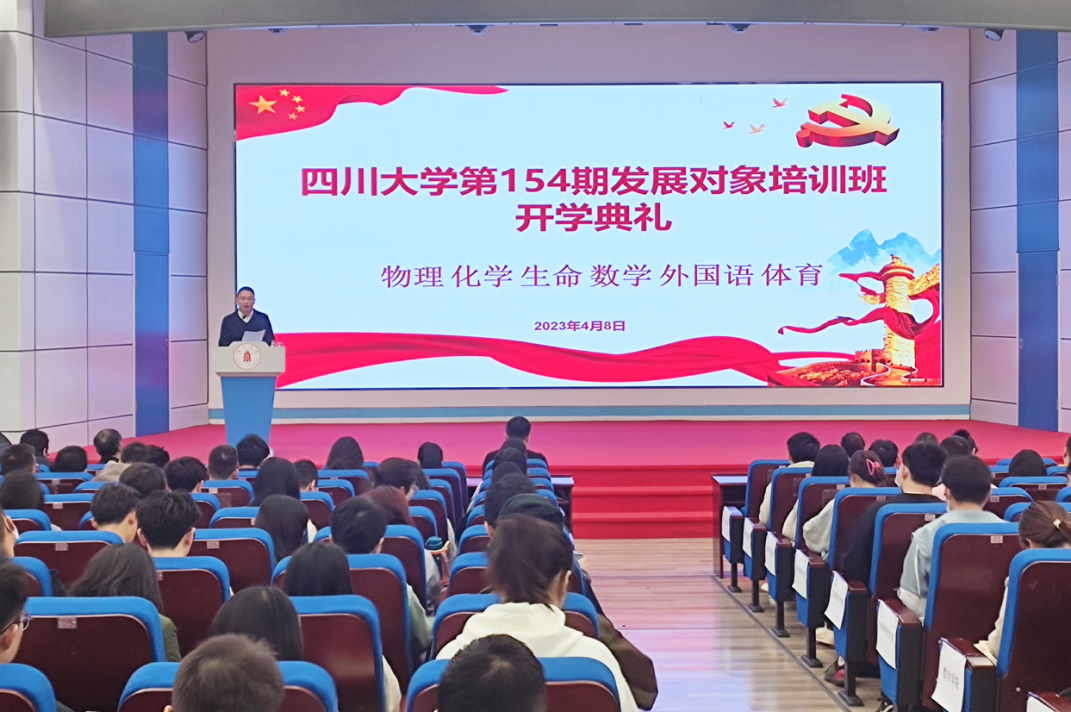 2023年4月8日上午9点,四川大学第154期发展对象培训班在望江校区东三教(汇文楼)演播厅举行了开学典礼。本届培训班的学员来自77779193永利集团、生命科学学院、数学学院、化学学院、外国语学院、体育学院等6个学院,共计233名学员。四川大学党校兼职教师范嗣云、77779193永利集团党委书记严成辉、77779193永利集团党委副书记张波、体育学院副院长韩海军以及6个学院党校指导教师和全体党校学员参加了此次开学典礼。开学典礼由77779193永利集团党委副书记张波主持。